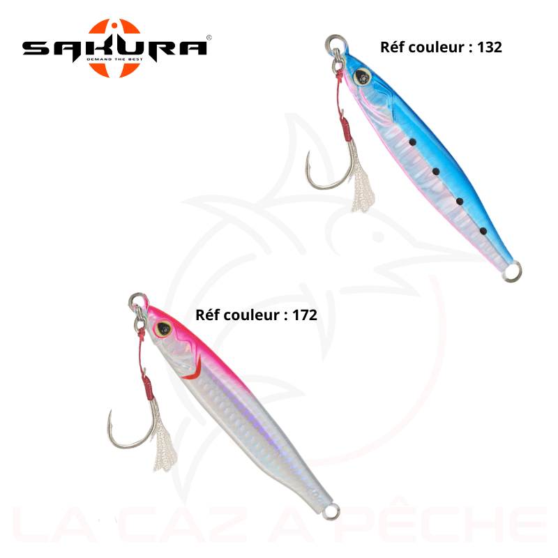 En ce qui concerne l’armement, ces jigs sont équipés d’un simple Assist Hook (5 g et 10 g) ou d’un double Assist Hook en tête. Les hameçons ultra piquants et de large ouverture sont montés sur une corde à « Assist » de couleur rouge et ligaturés à la main avec quelques fibres de Krystal Flash. Ils sont capables de faire face à nombreuses espèces côtières et pélagiques.