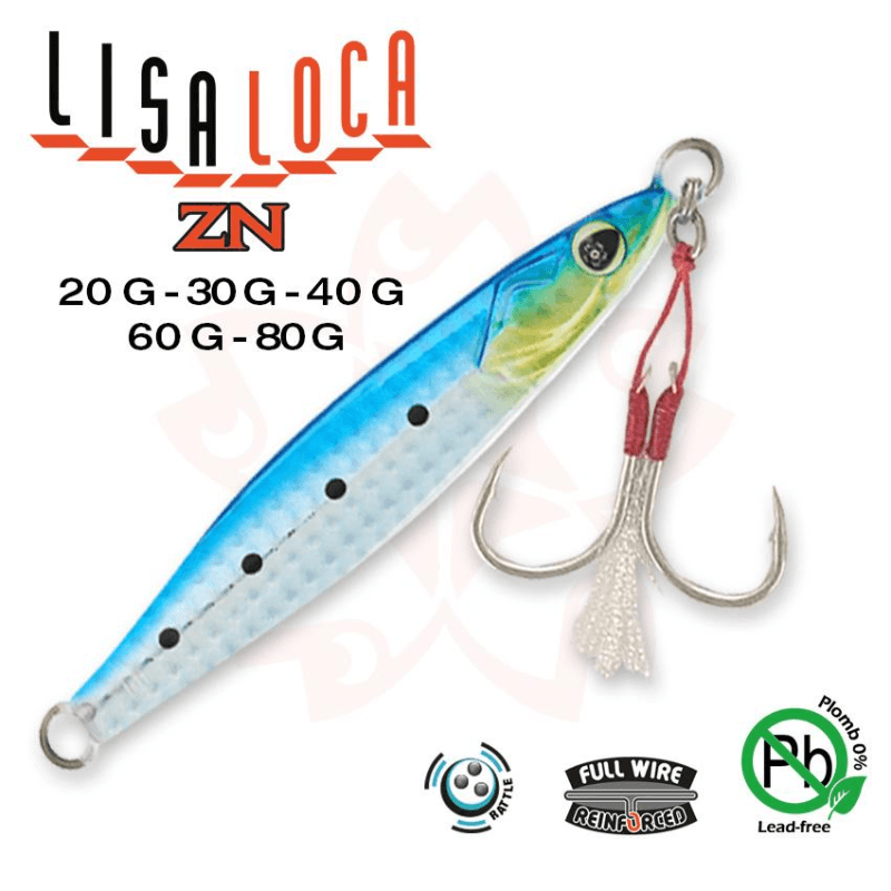 Lors des animations en « Light Jigging » et en « Shore Jigging », sa nage saccadée simule parfaitement les proies affolées tentant de fuir devant un prédateur et pour amplifier davantage l’illusion, les coloris du Lisa Loca Zn sont constitués de films holographiques particulièrement éclatants et attrayants.