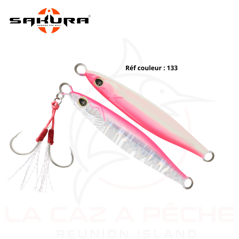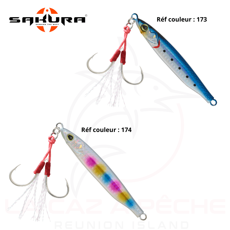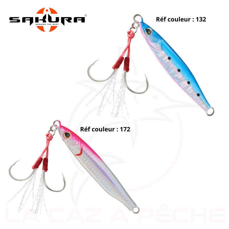 En ce qui concerne l’armement, ces jigs sont équipés d’un simple Assist Hook (5 g et 10 g) ou d’un double Assist Hook en tête. Les hameçons ultra piquants et de large ouverture sont montés sur une corde à « Assist » de couleur rouge et ligaturés à la main avec quelques fibres de Krystal Flash. Ils sont capables de faire face à nombreuses espèces côtières et pélagiques.